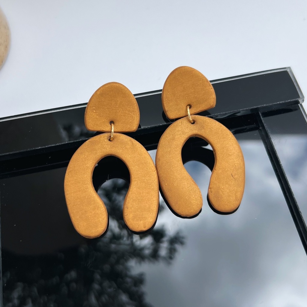 Ferraduras na cor dourada com uma leve nuance em marrom, um brinco cheio de estilo.