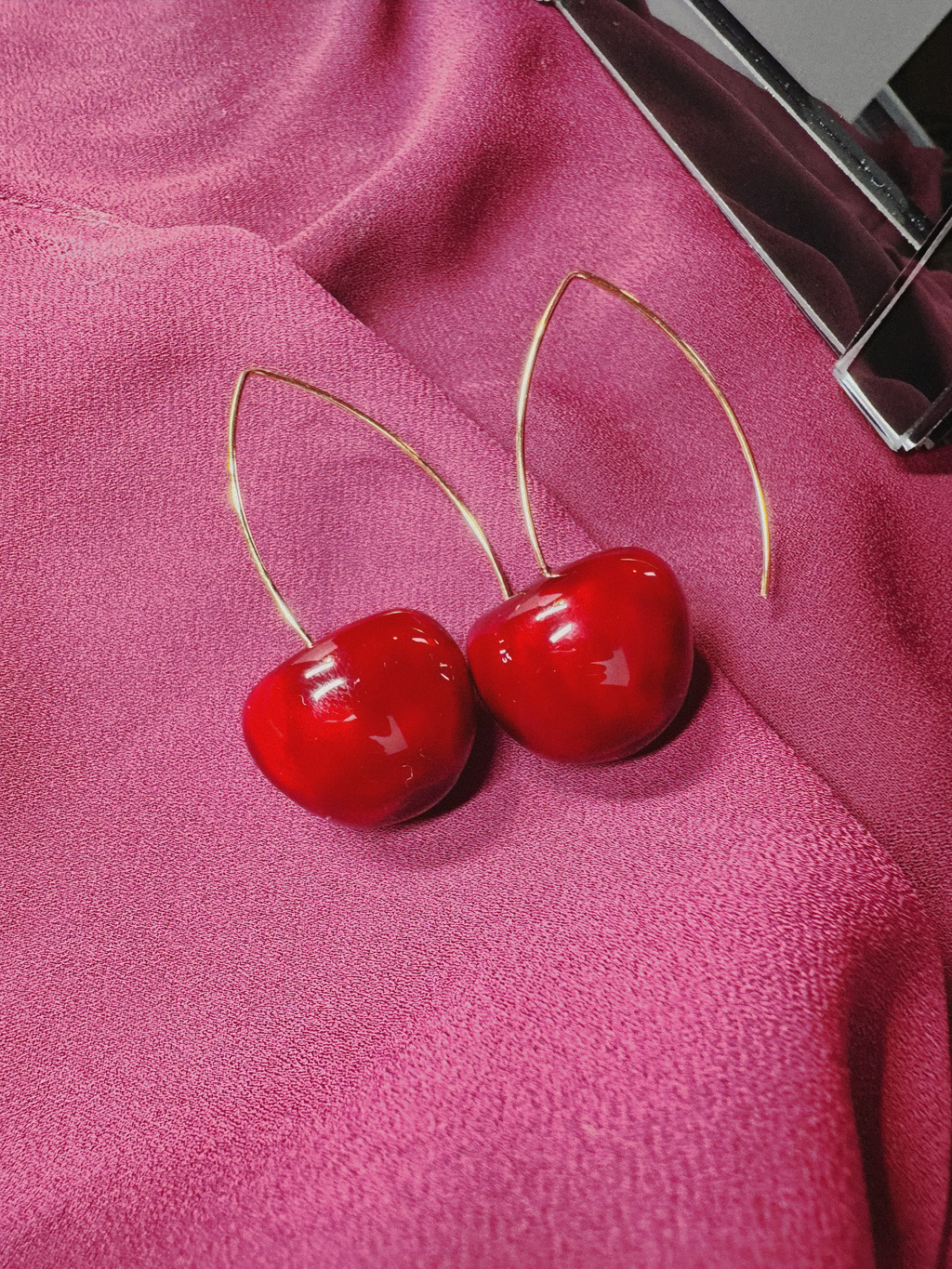 Feita de polymer clay e esmaltada com a cor "red cherry", o brinco vem com um acabamento perfeito em resina.